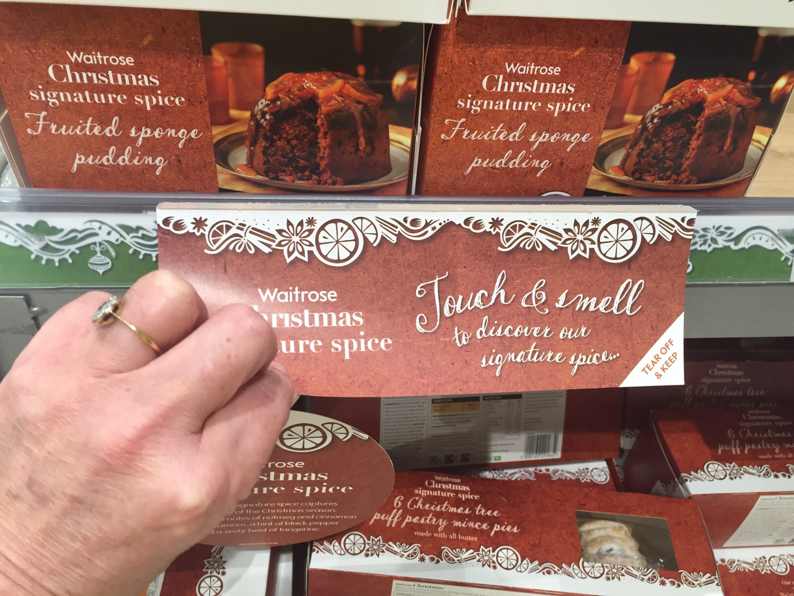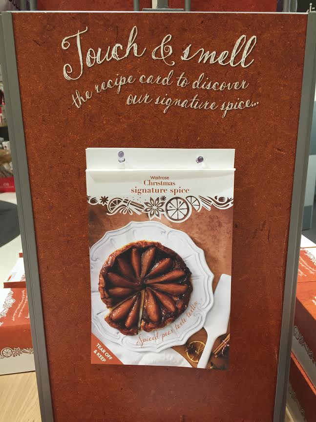 Waitrose’s wonderful campaign last year utilised the OS Pro diffuser on the customer service desk, scented recipe cards and printed solutions at point of sale to create a well-rounded, nose enticing promotion for their Christmas Signature Spice. Multiple festive foods and gift options (including mince pies, fruited sponge pudding, candles etc) used this tasty spice aroma.